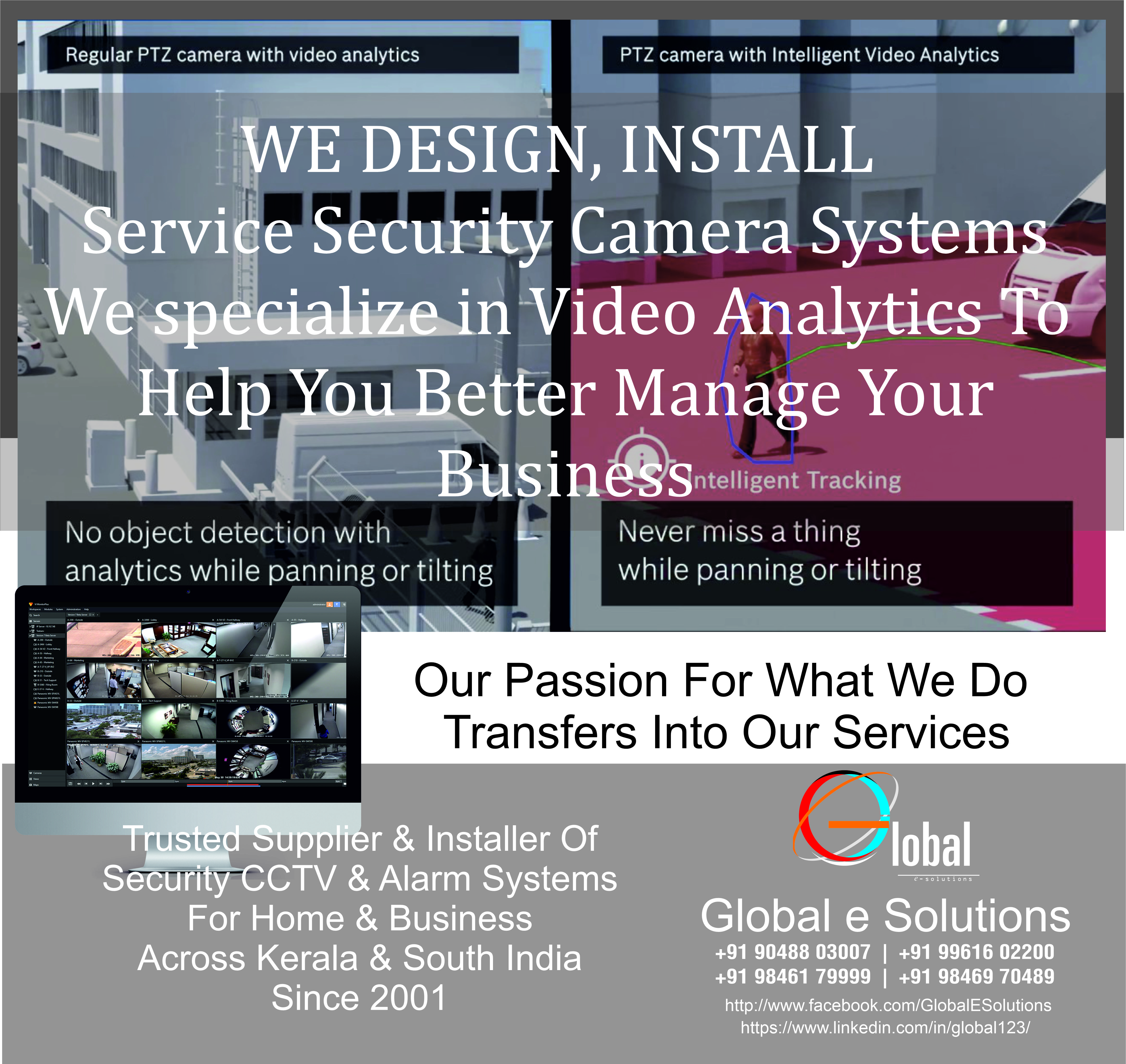 Global e Solutions a Pioneer in Security Surveillance Automation projects and services in south India provides a range of Electronic Security Surveillance equipment sales services for individuals and businesses across South India. Head Quarters at Cochin, Kerala operating across the South Indian States, offers high-quality security equipment & devices with partners & businesses nationwide One one of the prime factors for Global e-Solutions success is our esteemed & dignified clients and unrelenting focus on delivering quality products with the rapid change in product ranges & maintaining the first-class quality levels suitable for International markets. Our operations are highly responsible & we as a team execute the projects with excellence for growth. At Global e-Solutions, Innovation & research to look for the individual client requirements and offer the products that suit the clients' needs and professional technical support during & after the warranty period keeps the esteem of our client at top. The selection of product range & maintaining the quality standards at a set of rules as mentioned by Indian security standards, the products are highly stable & efficient. With Partnership with leading Brands in India, Global e-Solutions offer solutions from PELCO, HIKVISON, DAHUA, UNV, HONEYWELL, CP PLUS, SAMSUNG, VISION, iROBotics.US, SECURA, SONY, Hi-Focus, UNV, and many more. 19 years' experience in the field of Security Surveillance, field and experience in the nationwide installation of CCTV Products, make Global e-Solutions as one of the finest players in the field of Digital Surveillance in south India. With a humble beginning, we still feel we have not reached our destiny and we are learning every movement and changing as per the technology changes. From the normal analog System to Digital Ultra High Detention Megapixel System. Wired Security Systems to Wireless Solution, we have clear solutions for every customer's requirements. SECURITY SOLUTIONS BUILT AROUND YOUR NEEDS EXPERT CCTV INSTALLERS IN KOLENCHERY, KERALA CCTV SECURITY SYSTEMS (HIKVISION, CCTV Camera Dealers In Kochi, CCTV Installation In Ernakulam, CCTV Camera Dealers In Ernakulam, CCTV Camera Installation Ernakulam -CCTV Installation Cochin, CCTV Camera) CCTV Camera Dealers In Kochi, CCTV Camera Installation In Kochi, Ernakulam, HIKVISION, CCTV Camera Dealers In Kochi, CCTV Installation In Ernakulam, CP Plus CCTV Camera Dealers In Kochi #CCTV_INSTALALTION_COMPANY_NEAR_TO_ME #DOOR_ALARM_SYSTEMS #AMC_CCTV #CCTV_SHOP_NEAR_ME_IN_ALUVA #CCTV_INSTALLATION_NEAR_ME_IN_ERNAKULAM #CCTV_INSTALLATION #ALARM_DEALERS #ALARM_SECURITY_SYSTEM_COMPANIES #ALARM_SYSTEM_FOR_HOME #GLOBALESOLUTIONS #CCTV_IP_CAMERA_DEALERS_ERNAKULAM #CCTV MONITORS_DEALERS_ERNAKULAM #CCTV_NEAR_ME #CCTV_REPAIR_NEAR_ME #CCTV_REPAIR_AND_SERVICE_ERNAKULAM CCTV REPAIR SERVICE NEAR ME_ALUVA #CCTV_SECURITY_DEALERS_ERNAKULAM #CCTV_SECURITY_SOLUTIONS #CCTV_SERVICE #CCTV_SERVICE_NEAR_ME #ANTI_THEFT_ALARM_DEALERS_ERNAKULAM #BEST_ALARM_COMPANY_NEAR_ME #BURGLAR_ALARM_DEALERS_ALUVA #BURGLER_ALARM #CCTV_CAMERA #CCTV_CAMERA_SERVICE_NEAR_ME #CCTV ACCESSORIES NEAR ME CCTV Dealers, CCTV Installation Services, CCTV Repair & Services, Electronic Security System Dealers CCTV Wholesalers, Biometric Attendance Recording System Dealers, Security System Dealers Access Control System Dealers, CCTV Dealers-CP Plus, Biometric Access Control System Dealers CCTV Dealers-Hikvision, CCTV Networking Services, Wireless CCTV Dealers, Fibre Optic Caballing Internet Connection Providers, CCTV Accessory Dealers, CCTV Dealers-Panasonic, Biometric Attendance Recording System Wholesalers, Digital Video Recorder Wholesalers-Hikvision Biometric Attendance Recording System Dealers-Matrix, Security System Dealers-Samsung CCTV Dealers-Secura, IR Bullet Camera Wholesalers, CCTV Monitor Dealers, Security Alarm System Dealers. Home Security System Wholesalers, Industrial Security System Dealers, CCTV Wholesalers-Hikvision, IP Camera Wholesalers, HD Digital Video Recorder Wholesalers, Home Automation System Wholesalers, Biometric Access Control System Dealers-Zicom, Imported CCTV Dealers, CCTV Dealers-Bosch, CCTV Digital Video Recorder Repair & Services, Video Converter Wholesalers, CCTV Dealers-Tata Honeywell, CCTV Repair & Services-Sony, CCTV Dealers-Secureeye, Biometric Fingerprint Scanner Wholesalers, Residential Security System Dealers